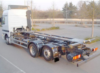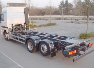 With the help of air cushions, installed on the car, the superstructure lifts to a required height. The air to these cushions comes from the additional receivers. The cranes ensure the lifting control. In raised position the special support legs are laid out from the superstructure bottom. Then, by the same cranes the superstructure on air cushions lowers down up the support legs’ contact with the ground. After complete lowering of the air cushion the car can go without superstructure. The superstructure attachment and fixing to the system is done with container fitting locks according to ISO standard, which reliably hold the superstructure when the car is operated on the roads of different categories. |